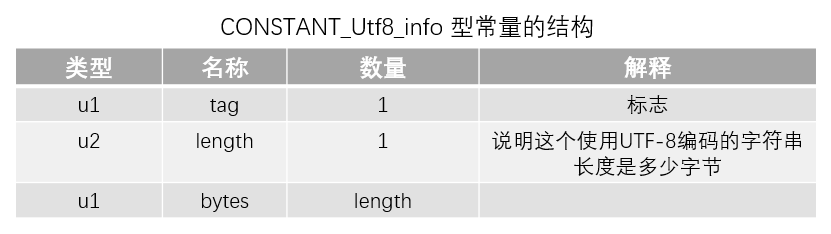 Class文件中方法、字段等都需要引用CONSTANT_Utf8_info型常量来描述名称。所以CONSTANT_Utf8_info型常量